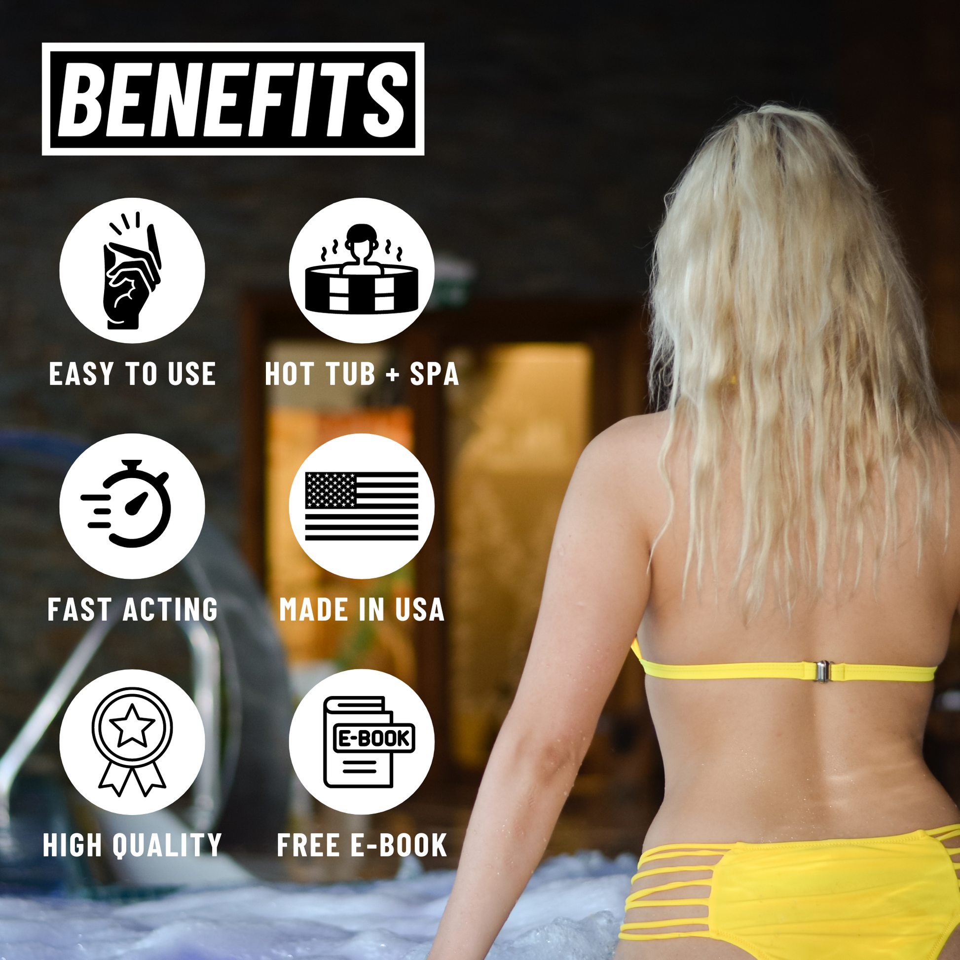 PROFESSIONAL GRADE: Exclusively designed for Hot Tubs, ensuring a safe, experience every time. Bubbyshine’s TOP QUALITY Chemicals for hot tubs!